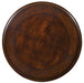 Tasteful and refined, the Leesburg Martini Table packs pedigree and style into a petite 18 W x 18 D footprint. From the carved and sculptured base leading to a shelf on four spool feet to the traditional pie-shaped top, the design is in the details of this table, finished in a traditional mahogany color with elegant cathedral and swirl mahogany veneers with light physical distressing.