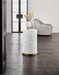 Serene and elegant in a white and gold color scheme, the Be-Leaf In Me Accent Table has a compact 15 ½ x 15 ½ round shape. Crafted of Resin and Quartz, the table has a white finish over a raised leaf motif, a Quartz top and a brushed gold base.