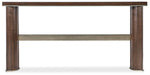 Classy and timeless, the Contours Console combines Walnut Veneer construction in a matched veneer pattern on top with a champagne-finished stretcher and accent trim. Featuring a narrow rectangle shape and concave-shaped legs, it has a narrow rectangle shape measuring 68 inches wide x 15 inches deep.