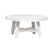 Elevate your space with the Modern Farmhouse splay leg cocktail table and splay leg end tables. Crafted of poplar solids with knotty white oak veneers, features heavy distressing, an appealing high-low planked top, and mortise tension accents on the legs for extra design element. Enjoy family game night or have your favorite snack with it spacious design. Kit includes one splay leg cocktail and two splay leg end tables. Also available in flea market white finish.