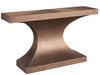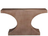 The Leander Console Table, with its fully Aged Brass metal body, forms a mesmerizing visual statement through two elegantly curved crescents. This commanding piece merges the worlds of art and function, appealing to connoisseurs of furniture that not only serves a purpose but also captivates with its sculptural beauty.