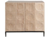 The Leo Bunching Credenza, encased in classic Travertine, is supported by an aged Satin Pewter metal base, radiating timeless elegance. It conceals two adjustable shelves behind its duo of doors, catering to diverse storage needs. The surface is adorned with subtly embossed patterns, adding a sophisticated textural dimension to its design, making this piece a refined and versatile addition to any setting.