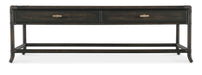 Inspired by tropical getaways, the Retreat Pole Rattan Cocktail Table is a mixture of natural materials in a laid-back, versatile design. Crafted of Oak and Maple Veneers with Rope accents at the joints, the table is finished in the sand-colored, transparent by design to showcase the unique grain patterns of the wood veneer. Finished on all sides, the table has two self-closing drawers, lower stretchers on all sides and is accented by textured, pewter-colored “T” pulls.