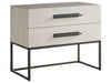 The Metal Base Nightstand combines industrial flair with natural warmth. Featuring a sleek metal base and a warm finish, its clean lines and two spacious drawers offer both style and functionality. This nightstand adds a modern, architectural touch to your bedside, perfect for those seeking a blend of contemporary design and practical storage.