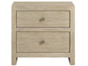 The Dockside Nightstand offers two-drawer storage in warm Dockside oak with convenient built-in electrical outlets. This nightstand provides ample surface space and storage while complementing the collection's casual coastal aesthetic.