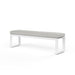 The Newport Dining Bench blends modern and industrial sensibility into one striking design, featuring a slat seat and linear frame. Crafted in powder coated aluminum in a Satin White finish, this bench pairs perfectly with our Newport 90" Dining Table. Fully welded, scratch-resistant powder-coated aluminum frame Optional Cushion Stocked in Premium Sunbrella fabric in Cast Silver Adjustable Non-Marring Feet Commercial Quality Construction Custom Cushions available in approx. 4 weeks. Newport is part of the Frost color story, and coordinates well with Miami, Naples, and Carrara pieces from the Bazaar.