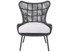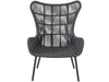 The shapely Hatteras Lounge Chair features a wingback-inspired frame wrapped in dark gray woven rope, creating a welcoming accent piece to suit a variety of design styles.