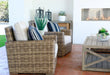 Crafted in the highest quality comfort and durability, The Havana Club Chair captures the relaxed nature of outdoor living with its organic texture and ample proportions. Featuring a premium all-weather wicker in a rich Aged Tobacco, Havana spans multiple design styles and offers a prominent seating and dining statement. Fully welded powder-coated aluminum frame Wrapped in virgin PE Resin Wicker in Weathered Tobacco Leaf Sunset West Progressive Springing System Technology Weather resistant, high-resiliency foam cushions Stocked in Premium Sunbrella fabric in Canvas Flax Non-marking plastic glides Commercial Quality Construction Custom Cushions available in approx. 4 weeks. Havana is a part of the Natural color story, and pairs well with Coastal Teak and pieces from the Bazaar.