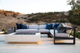 The Redondo Sectional blends modern and industrial sensibility into one striking design. Informed by mid-century design elements, the Newport features a low back and smart, linear frame. Sectional includes 1 Left Arm Loveseat, 1 Right Arm Loveseat, and 1 Corner unit crafted in powder coated aluminum in a hand-brushed Slate finish. Modular possibilities are endless with addition of our Redondo Armless Club Chair. Fully welded, scratch-resistant powder-coated aluminum frame Weather resistant, high-resiliency foam cushions Stocked in Premium Sunbrella fabric in Cast Silver Adjustable Non-Marring Feet Commercial Quality Construction Custom Cushions available in approx. 4 weeks. Redondo is part of the Slate color story, and works well with Milano, Emerald, and natural Granite pieces in the Bazaar.