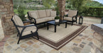 The Monterey Sofa incorporates organic lines with a stately frame for a handsome statement outdoors. Monterey is constructed in long-lasting aluminum, with an Espresso powder coat and Old World Copper Rub, for a beautiful look and finish that will stand the test of time with minimal maintenance. Fully welded powder-coated aluminum frame in Old World Copper finish Weather resistant, high-resiliency foam cushions Stocked in Premium Sunbrella fabric in Linen Stone Adjustable feet Commercial Quality Construction Custom Cushions available in approx. 4 weeks. Monterey is part of the Cognac color story, and coordinates well with the Montecito collection, Lagos chair, and other items from the Bazaar.