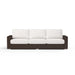 Inspired by the coastal town of its namesake, The Montecito Sofa offers purely sophisticated outdoor living. Expertly wrapped in a rich Cognac multi-colored weave, Montecito mimics natural materials with low maintenance in durable virgin resin wicker. Absolute comfort is provided with its generously sized frame and advanced seating support. Fully welded powder-coated aluminum frame Wrapped in virgin PE Resin Wicker in Cognac Sunset West Progressive Springing System Technology Weather resistant, high-resiliency foam cushions Stocked in Premium Sunbrella fabric in Canvas Flax Non-marking plastic glides Commercial Quality Construction Custom Cushions available in approx. 4 weeks. Montecito is part of the Cognac color story, and coordinates well with Monterey and pieces from the Bazaar.