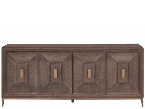 Universal FurnitureThe Montclair Credenza achieves media storage sophistication with striking geometric door fronts in Embossed Cocoa finish. This substantial piece f...