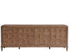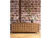 The Entertainment Credenza is a stunning blend of form and function. Its warm wood finish and intricately carved details create a sophisticated and timeless look. The ample storage space and cable management system make it a practical and stylish addition to any living