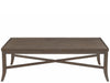The Cocoa Cocktail Table features elegant beaded edge detailing and a distinctive curved leg design that adds graceful movement to a substantial rectangular form. Finished in signature Cocoa oak, this piece provides generous surface space while maintaining refined neoclassical proportions.