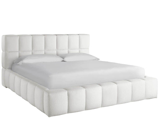 Universal FurnitureCenter bedroom dwellings with the Upholstered Platform Bed, a comfort-forward piece formed with a series of rolled cubes in a plush fabric. Modern ...
