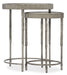 Organic and tactile, these accent nesting tables are rich in texture, crafted of iron and mirror with a silver finish over iron and a mirrored top. Add a glamorous modern twist to any space. The large table measures 19.5 inches in diameter and 24 inches high, while the small table is 14 3/8 inches in diameter by 19 ¾ inches high.