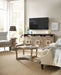 A rounded tabletop meets an angular base with soft curves, delivering style with swagger in the Affinity Round Cocktail Table. The serene color palette of the wire-brushed greige finish on quartered oak veneers completes the soft modern look. The tabletop is inset 3 inches all the way around to create a tray-like appearance.