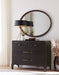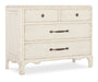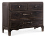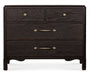 In a classic, charming design with a nostalgic flair, the Americana Bachelor Chest is reminiscent of a simpler, more genteel time. It has a scalloped shaped base and is finished in a deep, dark Molasses finish on Cathedral Oak Veneers. The four self-closing drawers have the warm Honey interior finish. Metal alloy bar and knob pulls are in an antique bronze finish.
