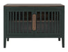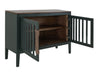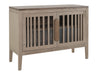 The console features a well-thought-out design, including a fixed shelf for convenient storage; this allows you to keep your space organized while displaying decorative items. The slatted doors, equipped with overlay hinges and magnetic catches, ensure secure closure, combining functionality with style. The integrated wooden handles, finished in a warm, enhance the overall aesthetic, while the unique floated top design adds a distinctive touch.