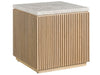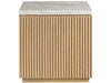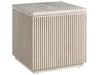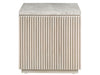 The Carmen Side Table, a striking piece of furniture, combines sleek lines with a unique square silhouette. Its textured, vertical design, reminiscent of natural elements, is juxtaposed with a smooth stone top. This captivating contrast and its versatile design make it a perfect addition to any interior space.