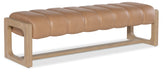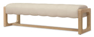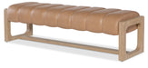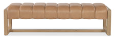 The Banyon Bay Bench combines natural materials with a contemporary design. Crafted from oak solids, oak veneers, and finished top-grain leather in a sunbleached tone, this bench adds an element of modern sophistication to your bedroom. The multi-step finish, with wire-brushing and cerusing, enhances its texture. The bench features a long rectangle shape with open ends and a channeled leather seat, providing both comfort and style. It’s a versatile piece that can be placed at the foot of the bed or used as extra seating in a bedroom or hallway.