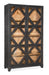 Vintage and rustic, the Big Sky Cabinet has a bold and simple design featuring seeded antique glass doors with a diamond-and-cross-beam pattern decorative overlay. The Charred Timber finish on the exterior contrasts with a Vintage Natural finish on the interior that reveals the authentic knots and wood grain of the Pecky Hickory Veneers. The doors have soft-close hinges, and behind them are two adjustable wood-framed glass shelves with a plate groove and one fixed wood-framed glass shelf in the center with a plate groove. The two lights have a 3-intensity touch switch on the right pack panel.