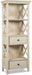 Need a stylish space to showcase dinnerware, pictures, decorations and more? This tall three-shelf display cabinet is a dream come true. The textured antiqued white finish provides a perfect backdrop for presentation. For the items you want to hide, there are two deep drawers. Embellished with the casual appeal of lattice sides, attractive crown moulding, clean lines and lightly distressed finish, this cottage-style shelf provides ample storage in such an artful way.