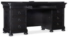 Casual yet refined and stylish, the Bristowe Computer Credenza sets a professional and inviting tone for any work-from-home space. Crafted of Pecan Veneers in a Tuxedo black paint finish with touches of warm brown and accentuated by 4 bun feet on each side of the desk, there are 7 drawers including the top left and right drawers with full extension metal ball bearing slides with removable divider inserts. The top drawers have finger grooves to open and the bottom drawers are locking file drawers with pendaflex filing system and full extension metal ball bearing slides. There is a power supply on top. The desk top area above the center drawer pulls out for added work surface.