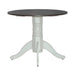 Feel at home with the Brook Bay drop leaf table set. Crafted with excellence using rubberwood solids and mindy veneers, this table features a two-tone Carbon Gray and Textured White finish. There are two 8” drop down leaves on the top, allowing the user to save space when needed. The pedestal base is heavy turned and is supported by shaped splayed feet. Feel comfortable and elegant at the same time with the Brook Bay drop leaf table set.