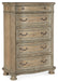 The Castella Five Drawer Chest brings together classic style elements and a relaxed, casual finish in an impassioned marriage of casual opulence. Exuberant design motifs such as acanthus leaf molding around the base, column motifs on the sides of the case and ornate bun feet infuse the piece with emotion. The refined rustic Antique Slate finish in a beautiful patina has the look of natural wood bathed in sunshine for a livable resort feeling. The bottom drawer is cedar-lined.