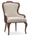 Exuding character and charisma, the shapely Charleston Arm Chair is inspired by the tropical craftsmanship of the West Indies and the woven cane accents of classic British and Dutch Colonial design. Featuring a seat and back upholstered in the Chateau Linen fabric, the chair has bronze-colored nailhead trim along the seat, and welt trim along the top and sides. The entire outside back of the chair is covered in cane. The carved cabriole legs are finished in Maraschino Cherry, using natural grain Cherry veneers showcasing the dramatic cathedral patterns with the selective inclusion of naturally occurring knots to deliver a rich warm cherry finish and a smooth, sophisticated aesthetic.