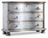 Dreamy in a soft blue finish that looks like it has aged through the decades, the Chatelet Chest will become the most romantic piece of furniture in your home. Design details like an acanthus leaf border on the base and chic bun feet add to the allure. Three drawers with a faux lock on the top drawer. Crafted of Poplar and Hardwood Solids.