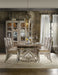Dine in livable luxury with this stunning Chatelet Refectory Trestle Dining Table. With both 22-inch leaves extending the table, you can welcome up to 10 guests. Crafted of Poplar and Hardwood Solids, the Pecan, Walnut and Maple Veneers tell a rich story in natural wood colors, and the vintage white finish softens the look. The harp-shaped bases on the table add a touch of romantic elegance.