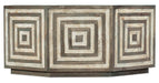 Offering a modern silhouette in a classic pattern, the Commerce & Market Cocktail Table has an octagonal shape, plinth base and a striped design using contrasting neutral-colored finishes. Crafted of Mango Wood, the table has a light wood finish and is on casters for easy mobility.