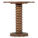 In a vintage design with a nostalgic bobbin base, the Spindle Accent Table is 22 inches round and crafted of Oak Solids and Veneers in a natural medium finish.