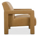 The Covette Accent Chair offers a modern and elegant seating solution for contemporary living rooms. Upholstered in premium semi-aniline leather, the chair features a fully upholstered open arm frame with intricate hand-laced suede detail. Its soft finish and sleek design make it a statement piece for any stylish home.