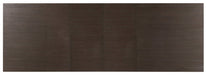 Sleek shapes and clean lines combine with a rustic deep brown Midnight finish on White Oak Veneers for a curated chic modern look in the Curata rectangle dining table. With both 20-inch leaves included, the table extends to 122 inches long and will seat 10 guests. The brushed brass feet are the finishing designer touch.