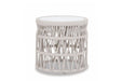 The Dana End Table is the perfect balance between intricate pattern and organic lines. This table features a honed natural Carrara marble top, and expertly wrapped base in premium all-weather olefin rope in natural Linen color. Wrapped in weather-resistant, colorfast rope in Natural Linen Natural honed Carrera stone top Dana is a part of the Natural Color Story, and works well with Coastal Teak, Laguna, and items from the Bazaar.