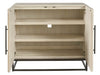 The Hall Chest combines architectural detail with practical storage. Featuring the collection's signature latticework design and a warm finish, its two doors open to reveal ample space for organizing essentials. The sleek metal base adds a contemporary touch, making this chest a stylish and functional addition to any entryway or hallway.