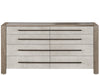 A weathered oak finish is embellished with light textured faux linen drawer fronts.