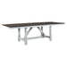 Sitting pretty with the Farmhouse five-piece trestle table set. Crafted of rubberwood solids and veneers, this kit includes the fixed-top trestle table and four Windsor back side chairs. The trestle table features a timeless heavy distressing with a two-tone and wood-tone with a planked top. The Windsor chairs, known for their comfort, feature nylon chair glides to protect your flooring and the same two-tone finish as the table.