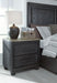 This nightstand is casual contemporary style simply done right. Its two-tone color scheme features a rich brushed black main color accented with a beautiful dusty grayish brown wood tone. Two drawers with sleek black pulls offer plenty of storage for your bedside essentials. The nightstand marries tech and clean-lined design, with a dual USB charging port along the upper back edge to keep your devices powered all evening long.