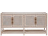 The Getaway Buffet packs a punch with lightly textured doors accented with sleek bronze hardware, open-air storage, two tray drawers and adjustable interior shelving, all finished in a serene, neutral hue.