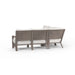 A re-imagination of materials, the Laguna collection from Sunset West embodies effortlessly stylish living. Crafted in lasting aluminum, with a hand-brushed finish to mimic real driftwood, Laguna captures a timeless look with modern sensibility offering the look and feel of natural wood, with minimal maintenance. Styled with tailored plank arms and high back, the 3 piece Laguna Sectional supplies clean lines and ultimate comfort. - Fully welded, scratch-resistant powder-coated aluminum frame - Hand-Brushed Driftwood Finish - Weather resistant, high-resiliency foam cushions - Stocked in Premium Sunbrella fabric in Canvas Flax - Adjustable Feet - Commercial Quality Construction - Custom Cushions available in approx. 4 weeks. Laguna is a part of the Driftwood color story, and coordinates well with Coronado, Manhattan, and Havana.