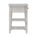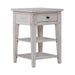 Accent your space with the casual country style Lake House chair side table. Crafted of poplar solids and oak veneers, this piece features an appealing planked top, two open planked shelves, simplistic wood and peg accents, one drawer accented by antiqued brass knob hardware, anchored by a tapered leg design. The golden oak finish allows for a universal appeal.