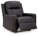 Classic, versatile and comfortable in every sense. This recliner is designed for everyday relaxation. Sleek faux leather offers a soft, supple feel that’s easy to maintain, while one-pull reclining makes unwinding effortless. Complete with a goes-with-anything dark gray hue, it’s a beautiful blend of style and practicality.