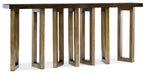 An abstract art lover’s dream, the Connelly Hall Console has an organic beauty, combining a Cathedral Black Walnut Veneer top and a random-pattern metal base in a soft, earthy gold finish.