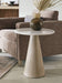 Combining luxe natural materials with a white marble top and cone-shaped, wire-brushed Quartered Oak Veneer base in a Diamond finish, the Modern Mood Round Side Table is a statement piece of organic elegance.