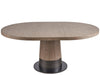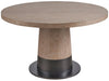 The Solara Dining Table showcases an intriguing two-tone aesthetic, blending the warmth of finish with the cool, aged character of a Satin metal base. This rounded table harmoniously combines textures and hues, infusing spaces with a cool, dynamic vibe and a nod to mid-century design sensibilities.