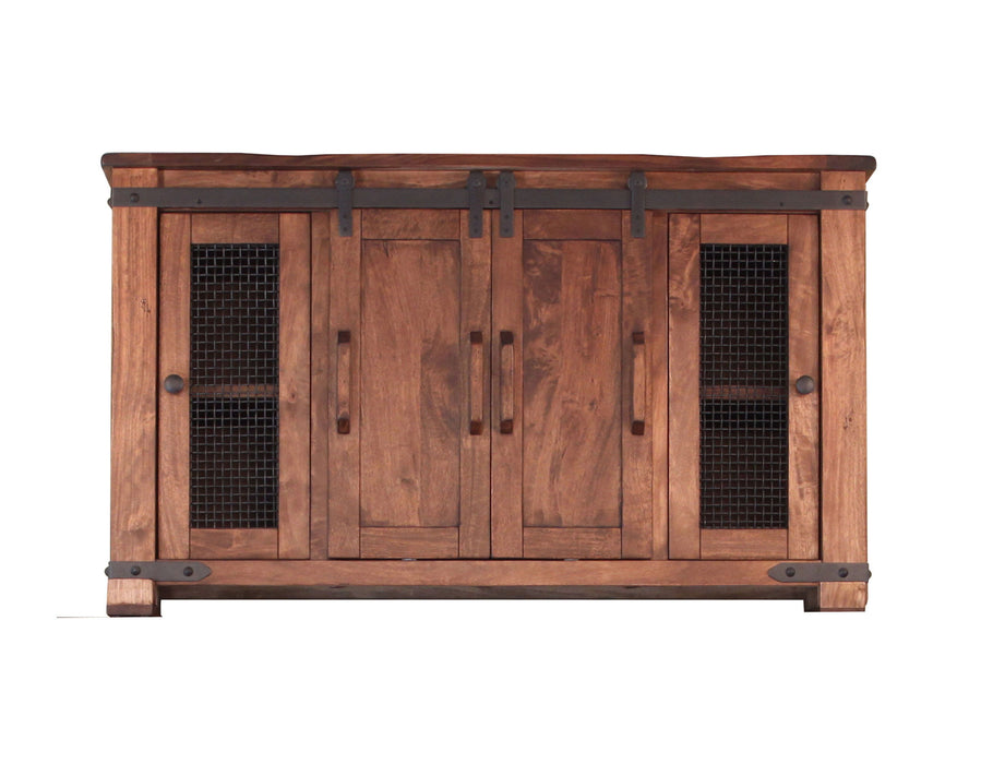 4 Doors TV Stand. The exceptional Parota collection features a top crafted from Parota wood, a species native to Mexico and South America. This outstanding collection is lightly hand-distressed and incorporates metal details for added elegance.